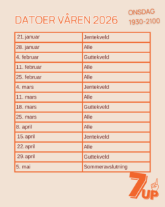 An event every week that begins at 7:30pm on onsdag, repeating until 27. mai 2026
