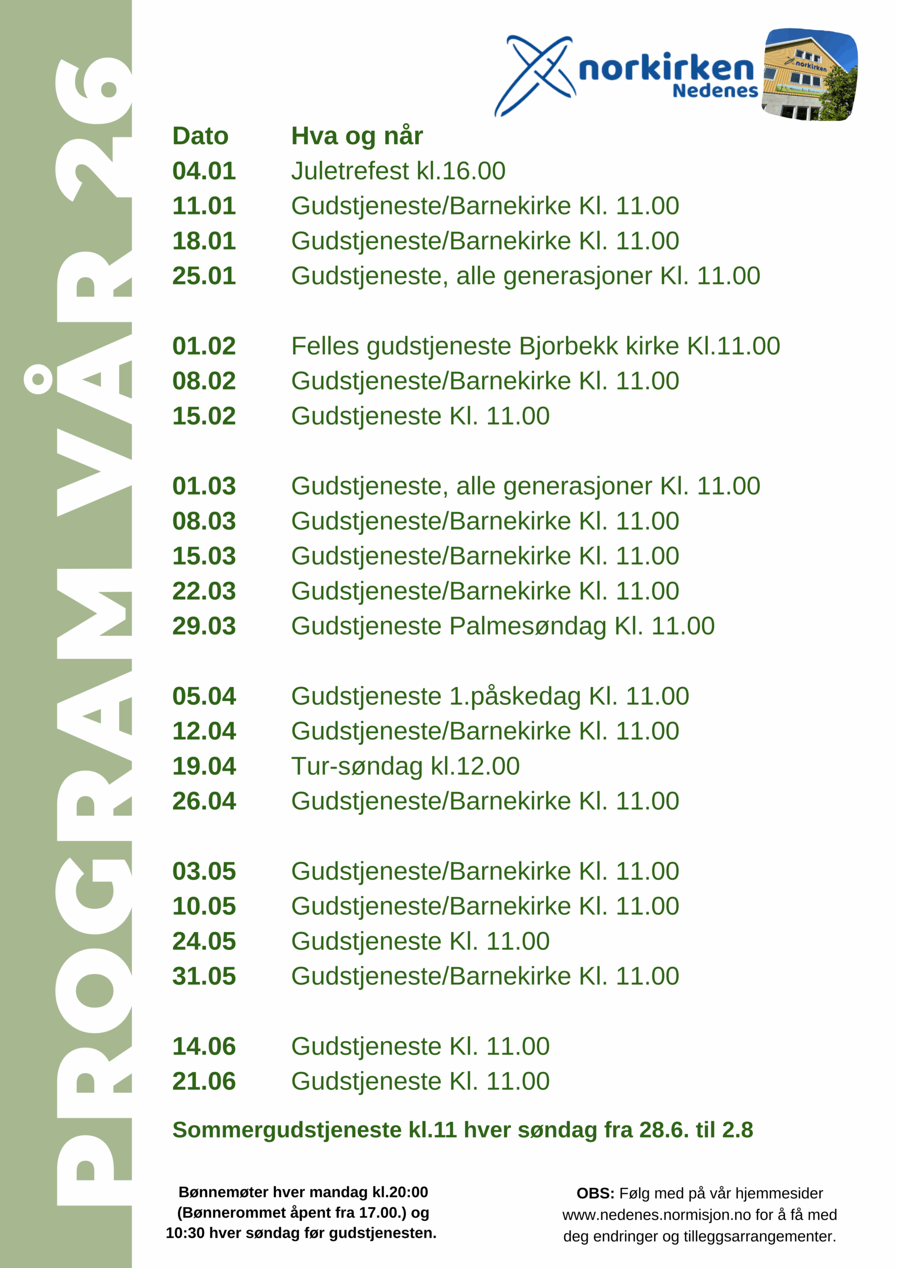 Følg med på kalenderen på forsiden for evt endringer i programmet.